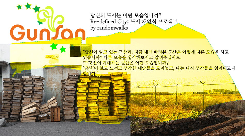 작가는 처음 군산을 방문하던 날 레지던시에서 제공한 투어프로그램을 따라 군산을 체험했다. 간략한 설명이 덧붙여진 도시 곳곳을 다니며 얻은 군산이라는 도시에 대한 단편적인 이미지는 작가에 의해 해석된 군사에 대한 ‘인상’이다. 이 이미지는 실제 군산이라는 도시의 실체라기보다는 일반적으로 인식되는 군산이라는 도시 이미지에 기반한 허상이다. 하지만 작가가 만든 이미지 역시 군산이 갖고 있는 도시의 일면이다. 작가는 일차적인 경험으로 얻어진 이 도시의 이미지에서 끝나지 않고, 지속적으로 군산을 여러 번에 걸쳐 체험하고자 하는 작가는 좀 더 군산이라는 도시에 대해 자세히 파악하기 위해 관람객, 군산에 거주하는 분들에게 도움을 요청한다. 작가가 본 인상을 제시하면서 더 자세한 도시의 면면을, 도시의 자화상을, 도시의 미래상을 그려봐주십사 하는 요청이다. 이방인으로서 작가가 본 도시의 모습을 제시하고, 도시 내부의 분들에게 질문하고 대답을 받는 일련의 과정을 반복하면서 군산이라는 도시에 대해 다시 생각해보고 재정의내리는 것이 이 프로젝트의 핵심이다. 질문에 대한 대답은 단지 일반시민에 국한해 요청하지 않는다. 군산 안의 누구나, 도시행정을 담당하는 공무원이나 도시에 미적 심상을 심어주고자 하는 문화예술인들도 새로운 도시를 기대하는 시민들과 이 도시 안에서 새로운 꿈을 키우는 어린이들 모두와 함께 각자가 기대하는 도시의 모습에 대해 사진을 찍고 생각을 적어서 다시 작가에게 보내면 그 생각들을 모아서 다시 정리해 다음 단계를 준비한다. 수렴된 생각들을 실제 도시 설계를 주관하는 기관들에게 전달하거나 시민단체에 전달해 도시의 변화에 직접적으로 반영할 수 있는 방법들을 모색해 실제 도시 모습의 큰 변화에 도시 안의 미시적 생각들이 거시적으로 드러날 수 있도록 지속적으로 작업을 진행할 것이다. |