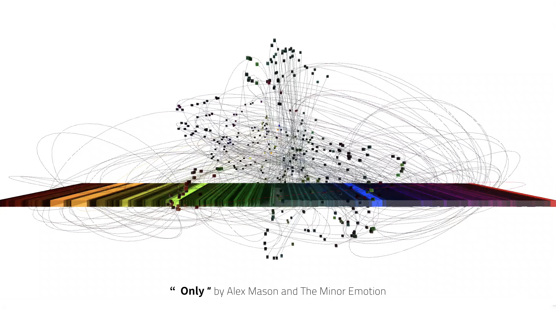 If AI can see music, how would it be look like? Machines can learn human behaviors and contents. With Strong AI, machines can recognize images, voices, text, sound etc. But, as we all know, machine interpretation is different from human understanding. Especially in music, human understand and express music in abstract ways, but machines understand music in more analytic and data driven ways. Moreover, with AI, machines can understand music on higher level, which means beyond time dimension. We listen music as time series, but machines can analysis and re-organized it upon its sonic feature distinction. Therefore, my question is, what would music look like with machine’ perspective? This project, “What if machines can see music…?” visualizes similarities and relationships of many audio chunks from a single audio track. From this visualization, we can see how many audio events happened in one audio file ( via number of chunks) and how those chunks are related to each other (via clustering). And also, you can listen those chunks as time series. Every audio file has different sonic events and feature distinctions. Therefore, with this visualization, each music file can have its own from and figure. Can machines be creative? Yes, I guess. because machines can see the world not like human does and never like human can image. This is machine singularity which human doesn’t have. This project has been selected NIPS Machine Learing for Creativity Workshop exhibition, 2017. For the exhibition, click *HERE* [data] 1. As input, a single audio track (a song) into many audio chunks. 2. Those chunks happened according to the beginning of discrete sonic events in the input audio. 3. With librosa lib( mel-spectrogram), features are extracted from those audio chunks. 4. as result, 26 features from each chunk. 5. clustering those chunks via t-sne according to feature similarities TEST_classical music. audio source : “Only” by Alex Mason and The Minor Emotion audio link : freemusicarchive.org According to mel-spectrum analysis, one audio file can be chunked in many smalls according to its sonic events. ![]() With t-sne algorithm, those chunks are clustered according to its feature similarities. Colors are applied to first chunk to the last, from red to purple. (rainbow color). From this 2D visualization, we can recognize intro part(red group) and ending part (purple group) are distinguishable from the rest. ![]() -2D clustering video [visualization] 1. Visualizing high dimensional data in low dimensional space. 26 features of audio chunks in 3D space with t-sne. 2. Two tracks of visualization 2-1) first track : as time order, all the chunks are shown at the bottom. The size of each box represents the length of the audio chunk. 2-2) second track : place the audio chunks in 3D space according to its feature similarities with other chunks. 3. Sound : play each chunks according to its time order. 4. As result, every audio file can have its own form and shape. ![]() - more tests - After testing a classical music, I have expanded my exepriment to more various genres such as electronic, contemporary, of course pop music. TEST_ electronic music audio source : “CosmoF” by sanmi audio link : freemusicarchive.org Mel-spectrum analysis. ![]() Clustering with T-SNE ![]() 2D clustering video |
