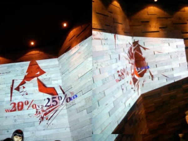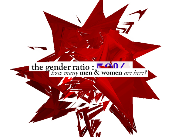 Gender ratio is a project where we experimented to see how data visualization influences our decision making process. This project was implemented at the entrance of a nightclub in Seoul, Korea. Before paying the cover charge to enter, the visuals indicate the gender ratio of the clubgoers inside. Visitors can then make a decision on whether or not they want to enter with this information. |